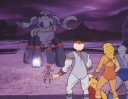 Deep inside Castle Plun-Darr, the Mutants are showing off their latest creation, a Plun-Darrian Warbot to Mumm-Ra. Slithe demonstrates the robot's abilities by making it turn a nearby Frogdog into a statue. Even though Mumm-Ra is not impressed by it, Slithe assures him that the robot has a lot more deadly weapons in its arsenal. He then instructs the robot to head to Cats Lair.