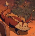 Snarf is a small, cat-like creature with an underbelly that looks similar to the underbelly of a turtle. His tail is long and comes to a point, with a fluff of white fur at the end. The main part of his fur is a sort of mahogany color. There is white fur around his face, and has a yellow mowhawk-esque fluff on the top of his head. His paws are also yellow.